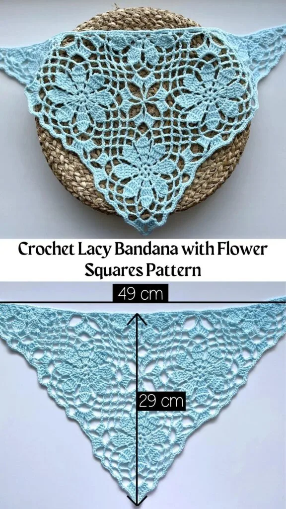 17. Crochet Lacy Bandana with Flower Squares Pattern